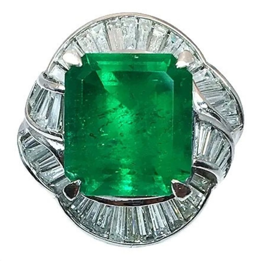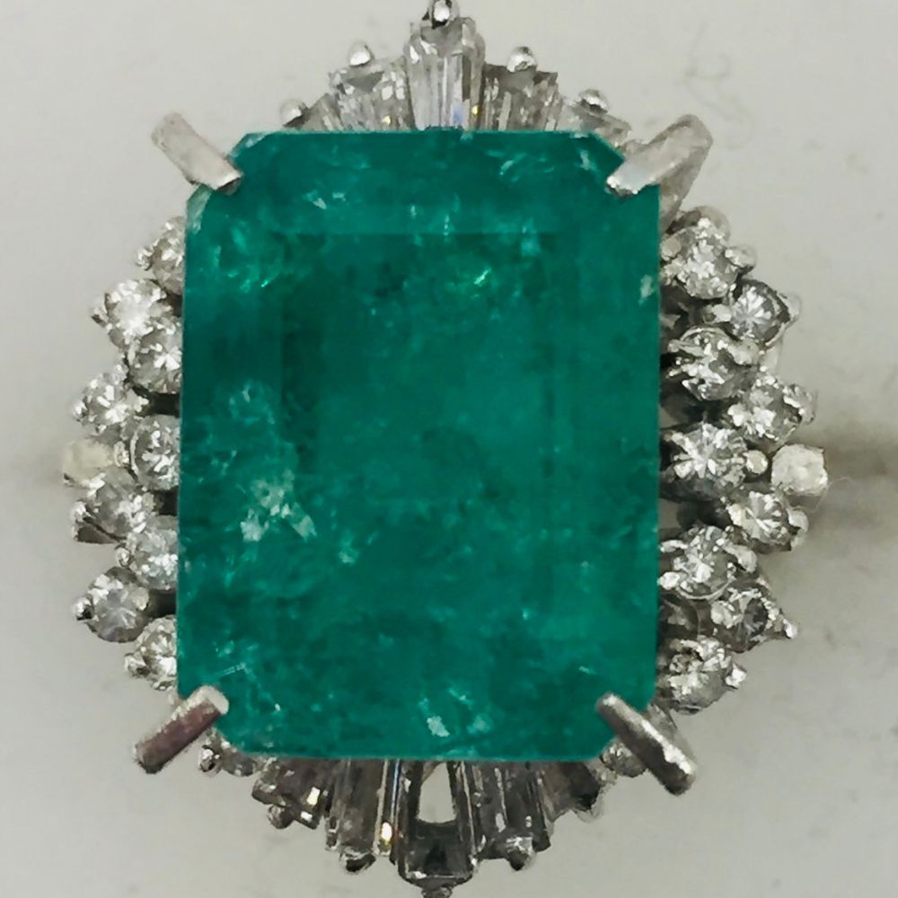 Pt900 リング エメラルド7.02ct メレダイヤ0.82ct