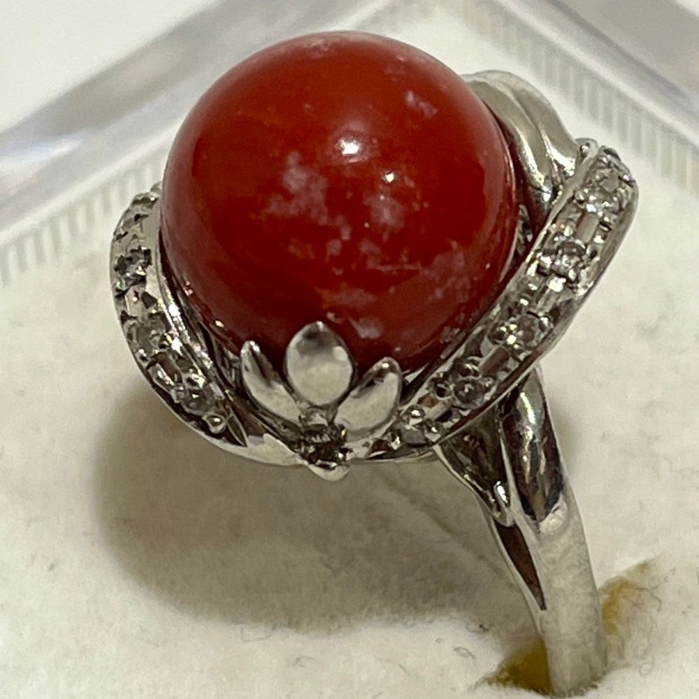 Pt900 リング 珊瑚14㎜ メレダイヤ0.07ct