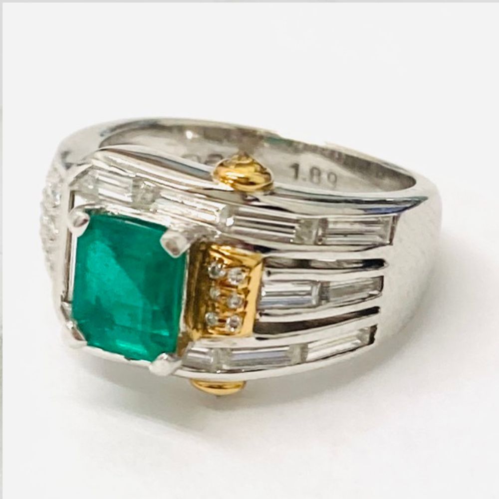 Pt900/K18 リング エメラルド1.09ct メレダイヤ0.05ct